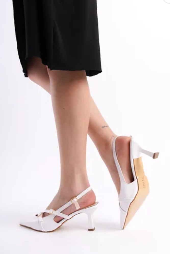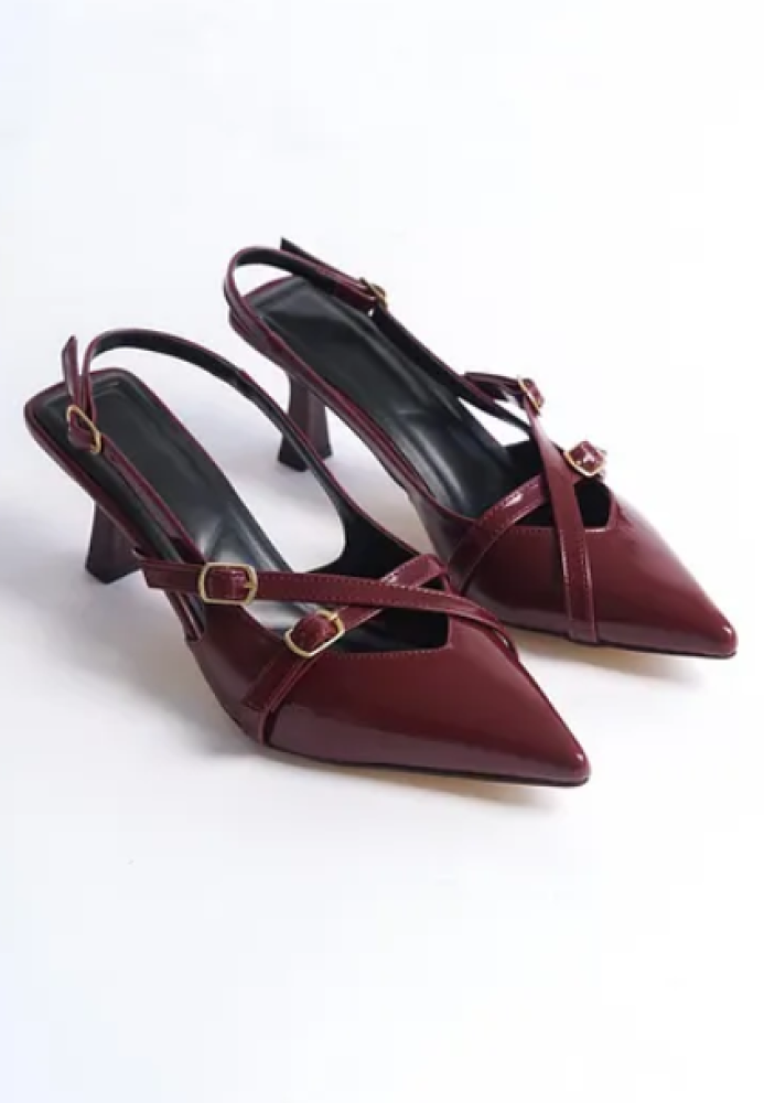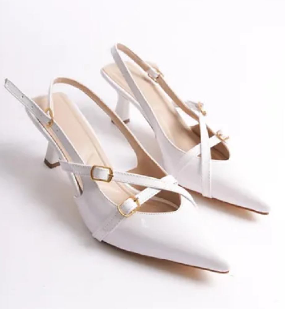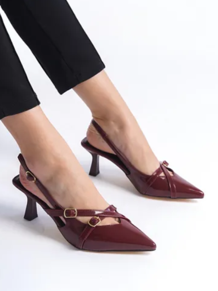 حذاء نسائي بكعب مع مقدمة مدببة وتفاصيل إبزيم