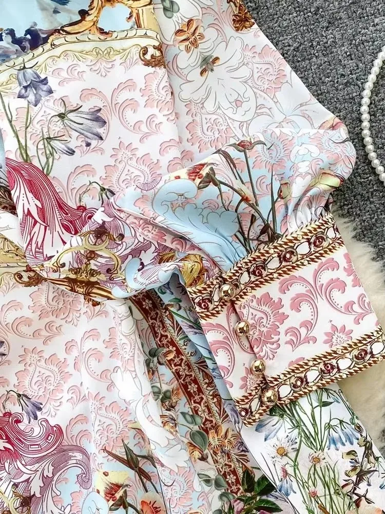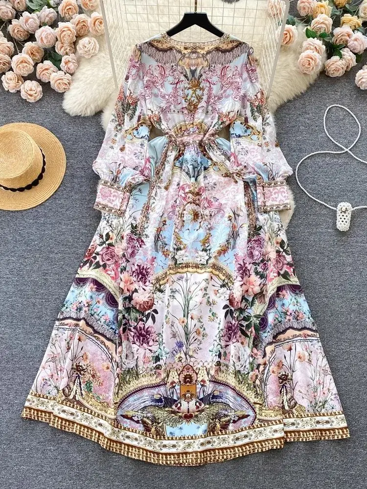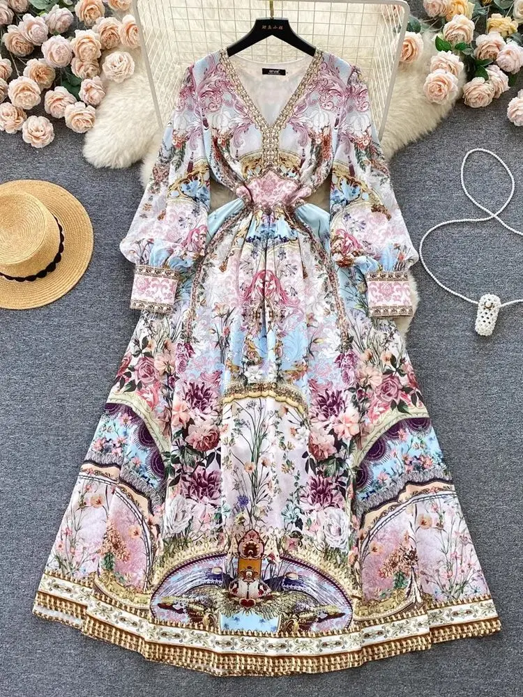 فستان سهرة نسائي برقبة حرف V وأكمام طويلة وخصر مرتفع مطبوع عليه زهور ، فساتين حفلات أنيقة ، رداء حفلة موسيقية ، ملابس نسائية ، موضة ،
