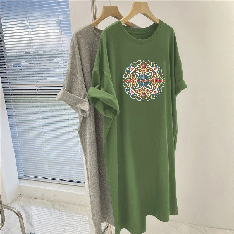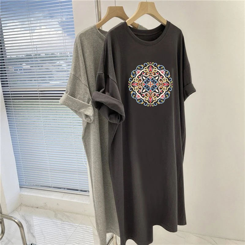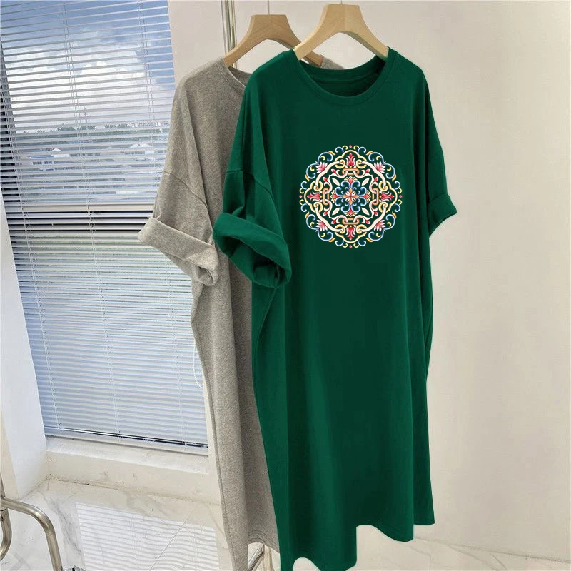 فستان نسائي بأكمام قصيرة برقبة دائرية ، تونيك مطبوع أنيق ، كاجوال يومي ، بلوفر مريح فضفاض ، فساتين متوسطة الطول ، ملابس صيفية
